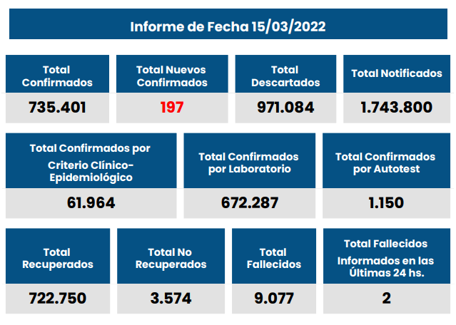 Desde el inicio de la pandemia se confirmó un total de 735.401 enfermos de Covid-19 en todo el territorio provincial.