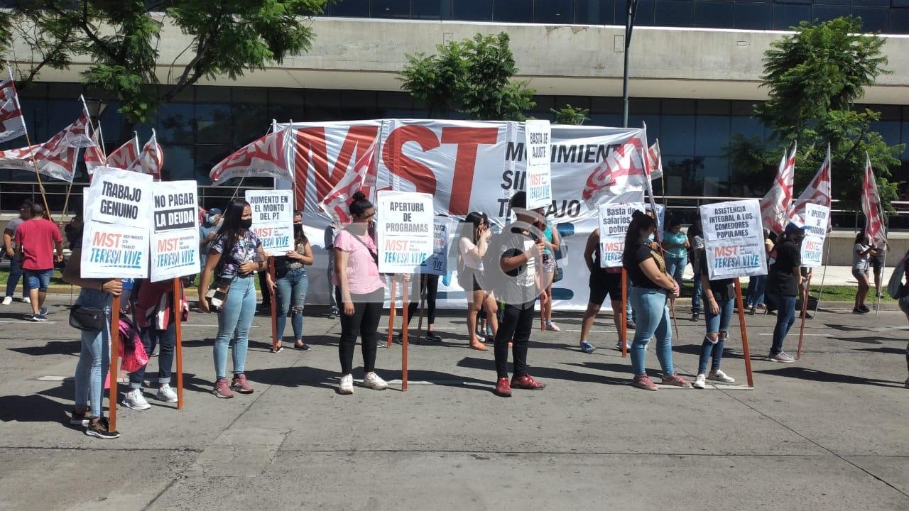 Cristina Moreira, en representación del MST aseguró que la manifestación es un reclamo a nivel nacional, y es por "mayor asistencia a los comedores, entendiendo que el año pasado en pleno verano se nos mandaba mil toneladas de sémola y polenta, con el calor".