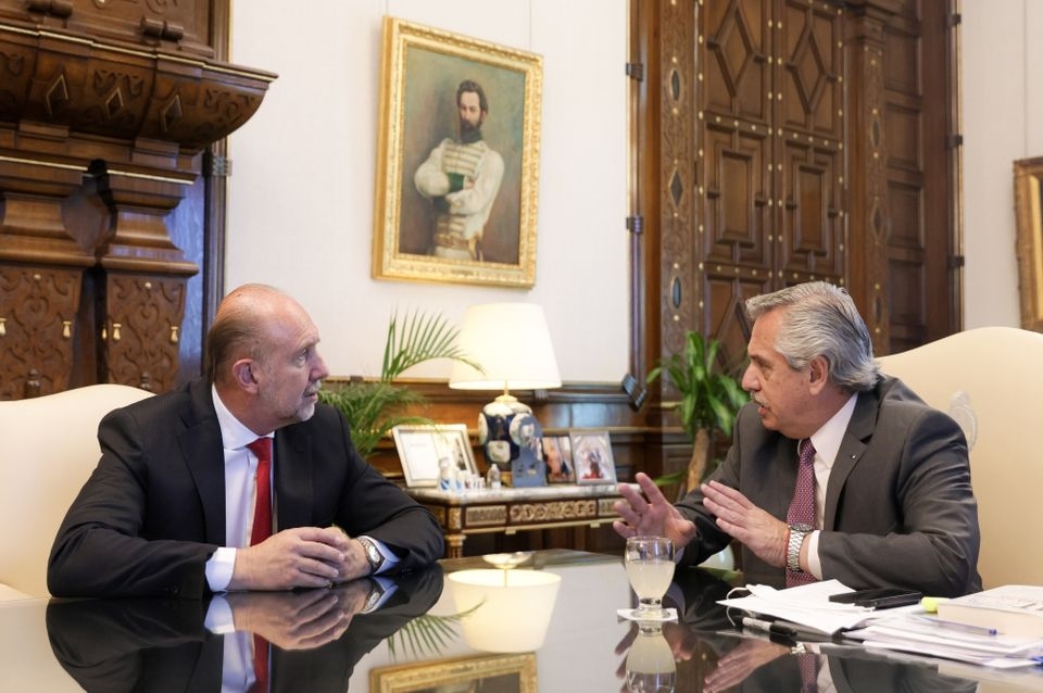 El gobernador Omar Perotti mantuvo este miércoles por la tarde una reunión de trabajo en Casa Rosada con el presidente de la Nación, Alberto Fernández. Uno de los ejes centrales fue evaluar la situación que atraviesa el sector agroindustrial. El encuentro se da luego de las críticas del rafaelino ante el anuncio oficial de suspender las exportaciones de harina y aceite de soja.