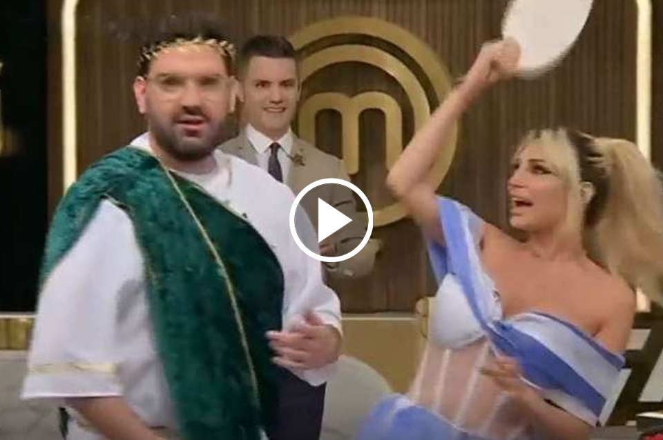 Fiel al estilo de la cultura griega, la panelista comenzó a lanzar platos al piso y lo mismo hicieron Santiago del Moro, conductor, y los jueces. Para sorpresa de todos en el estudio, en plena alegría, la ex participante decidió romper uno de ellos en la cabeza de Damián Betular para dejar en shock a todos los presentes.