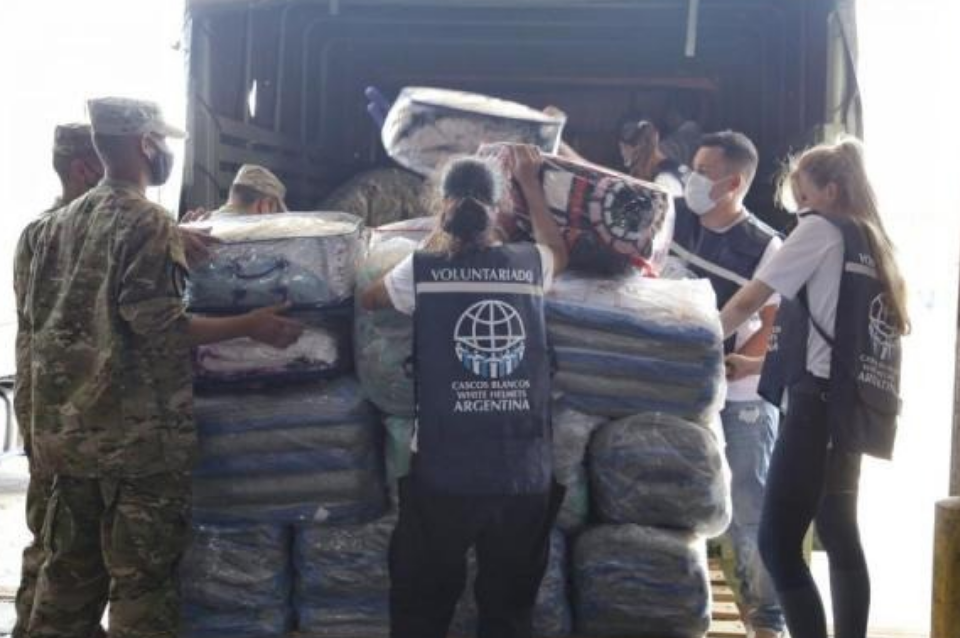 Cascos Blancos junto a la comunidad ucraniana en Argentina recolectaron gran parte de esta carga para asistir a los refugiados que son víctimas de la invasión rusa.
