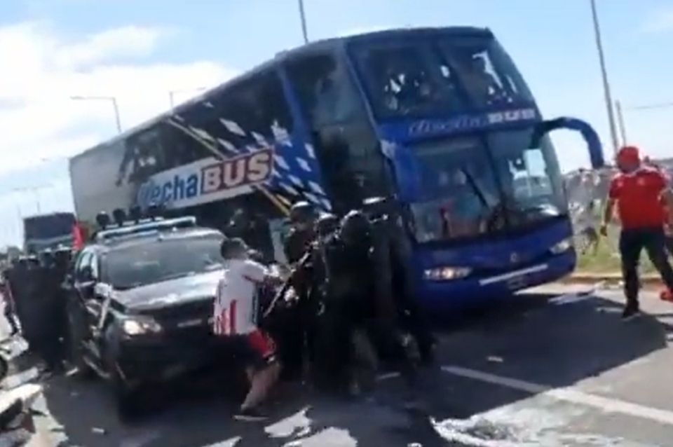 Se armó también una fila india en estilo caravana con bocinas y todo el colorido, pero en un momento apareció la tensión con la intervención de la policía. Por lo que se pudo saber, la idea era disipar para el que el micro en una parte ya viaje solo. Ahí, se dieron intercambios de acciones, donde un efectivo habría disparado balas de goma.