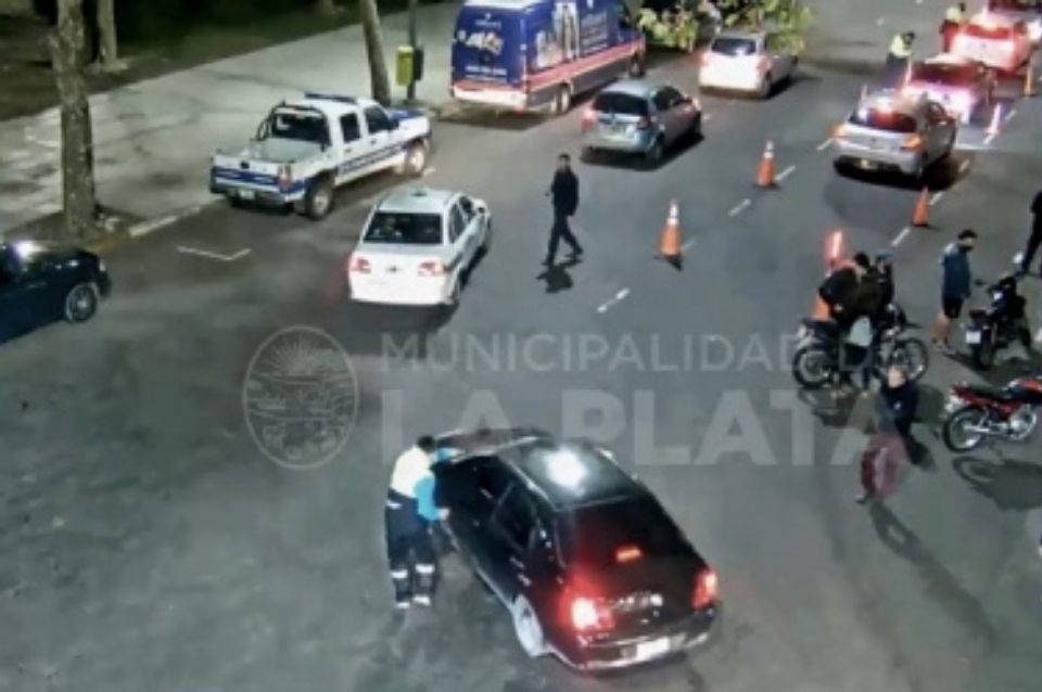 El hecho ocurrió en la intersección de calle 13 y 50 en la zona de Plaza Moreno de la capital bonaerense, cuando en el marco de los operativos de control vehicular los agentes municipales hicieron ingresar al corredor vallado por conos a un vehículo marca Fiat Siena de color negro con vidrios polarizados.