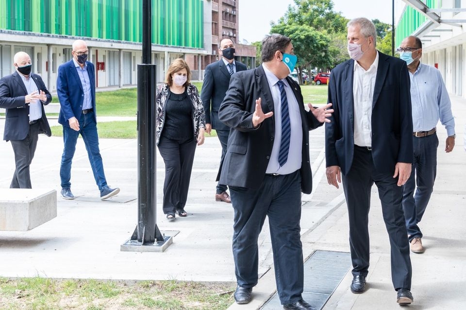 Durante el mediodía de este lunes las autoridades se dirigieron a Ciudad Universitaria para supervisar el avance de la obra del Aulario Común de Costanera Este y recorrer las nuevas residencias estudiantiles inauguradas a fines de 2021 que cuentan con 60 departamentos en los que viven 240 personas.