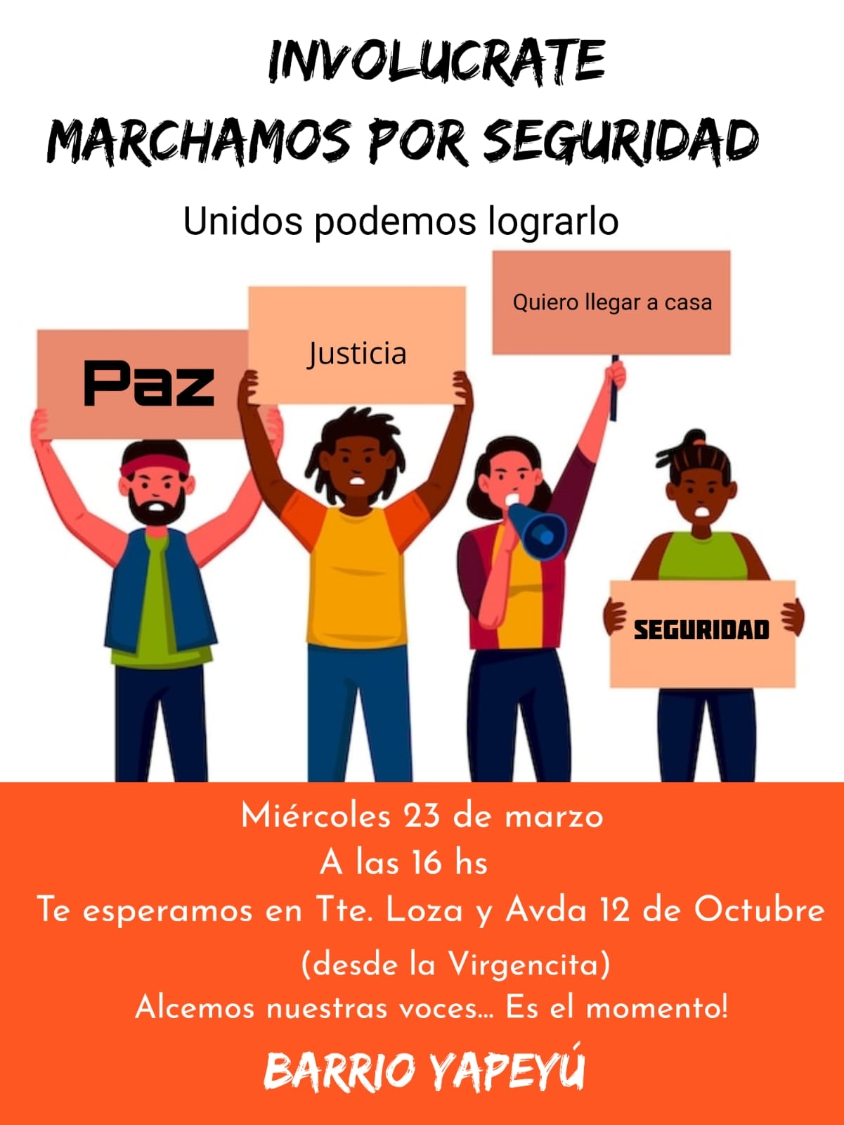 La manifestación será este miércoles 23 de marzo a las 16 hs bajo el lema “Involúcrate, marchamos por seguridad".