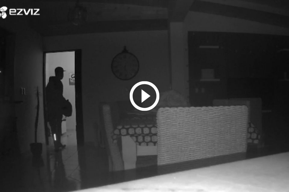 Una cámara de seguridad en el interior de la casa registró como un hombre, descalzo, ingresó y paseo por la planta baja buscando pertenencias para robar.