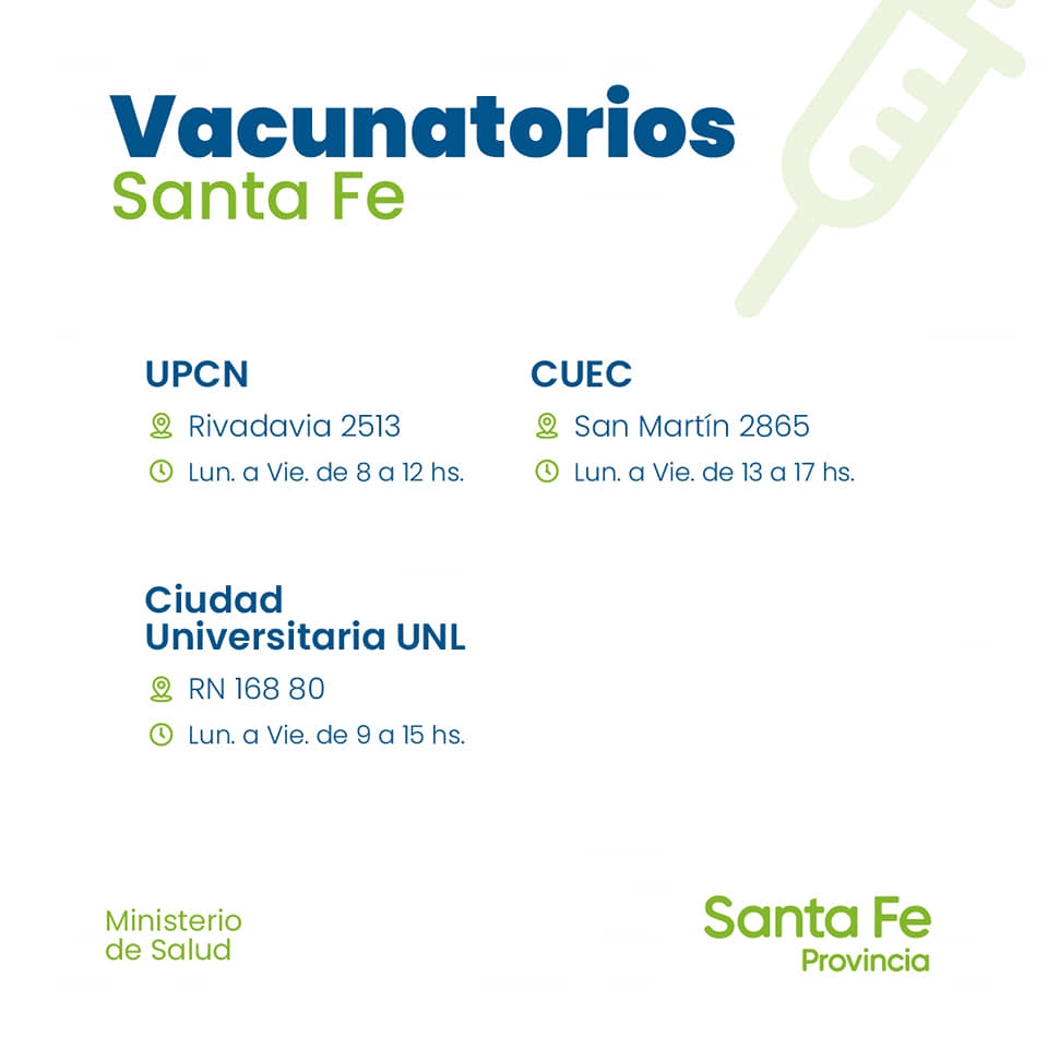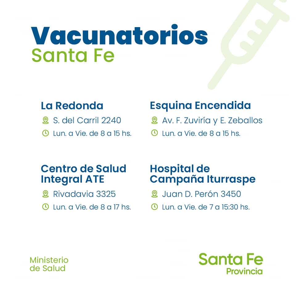De esta forma, quedarán operativos los centros vacunatorios montados en: