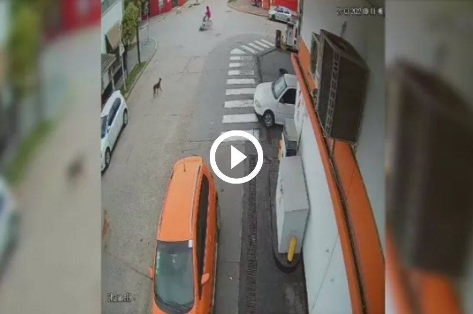 La mujer, cuyo nombre no trascendió, fue atendida en el hospital de Ranchos a raíz del golpe que sufrió cuando el animal la derribó de su bicicleta. El episodio quedó registrado por la cámara se seguridad de la vía pública y fue difundido por el sitio Castelli Diario.