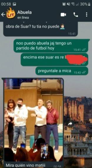 "¿Obra de Suar? Tu tía no puede", invitó la abuela según el chat que llegó a Twitter y se volvió viral. "No puedo abuela, tengo un partido de fútbol hoy. Encima ese Suar es re...", le respondió Mati.