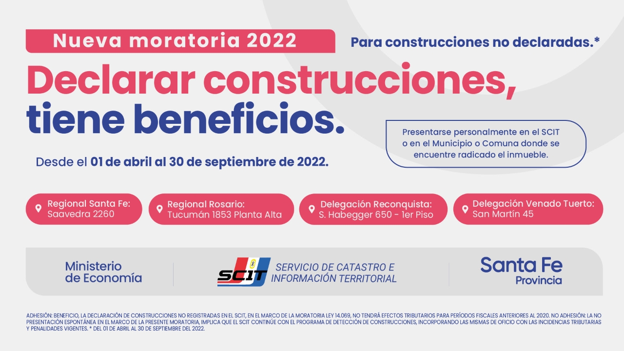 El Servicio de Catastro e Información Territorial de la Provincia de Santa Fe (SCIT) abrió una moratoria destinada a aquellos contribuyentes que hayan realizado construcciones y aún no las hayan declarado ante este organismo.