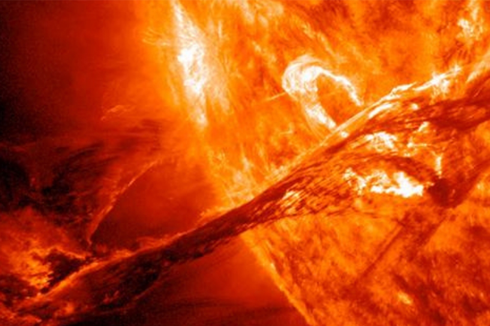 La liberación de energía resultante lanza ráfagas de radiación llamadas erupciones solares, o chorros explosivos de material solar llamados eyecciones de masa coronal.