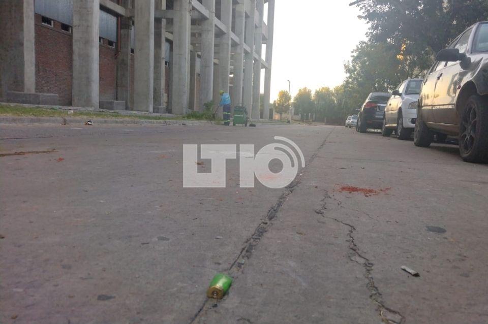 Personal de la Agencia de Investigación Criminal realiza esta mañana las tareas de peritajes en la zona donde se dieron los disparos y disturbios en la previa del partido entre Colón y Peñarol de Uruguay que terminó con cuatro oficiales y un hincha de los visitantes heridos.