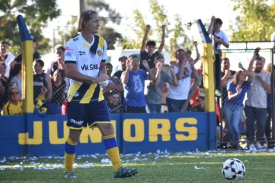 El volante ex Atlético de Rafaela, Colón de Santa Fe y Racing Club, entre otros, estuvo en cancha, con su tradicional camiseta #14, pero su equipo cayó derrotado 2-0 por El Xeneize de Serodino.