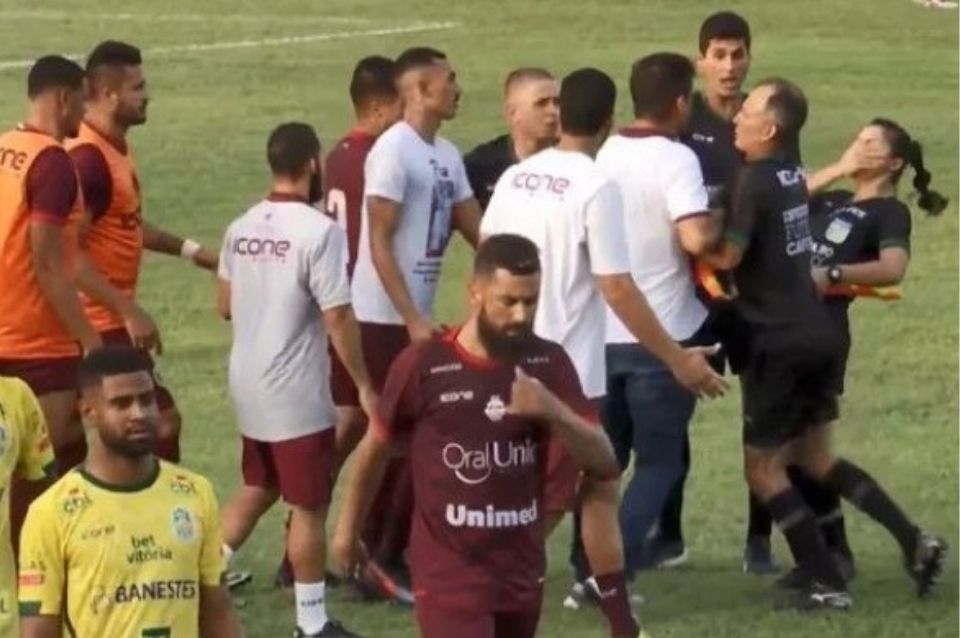 Apenas termiando el primer tiempo, el entrenador de Desportiva Ferroviaria se acercó a la terna arbitral para reclamar pero, cuando apareció en su camino la jueza Netto, le dio un cabezazo que le impactó en la punta de la nariz, sin mayores consecuencias físicas.