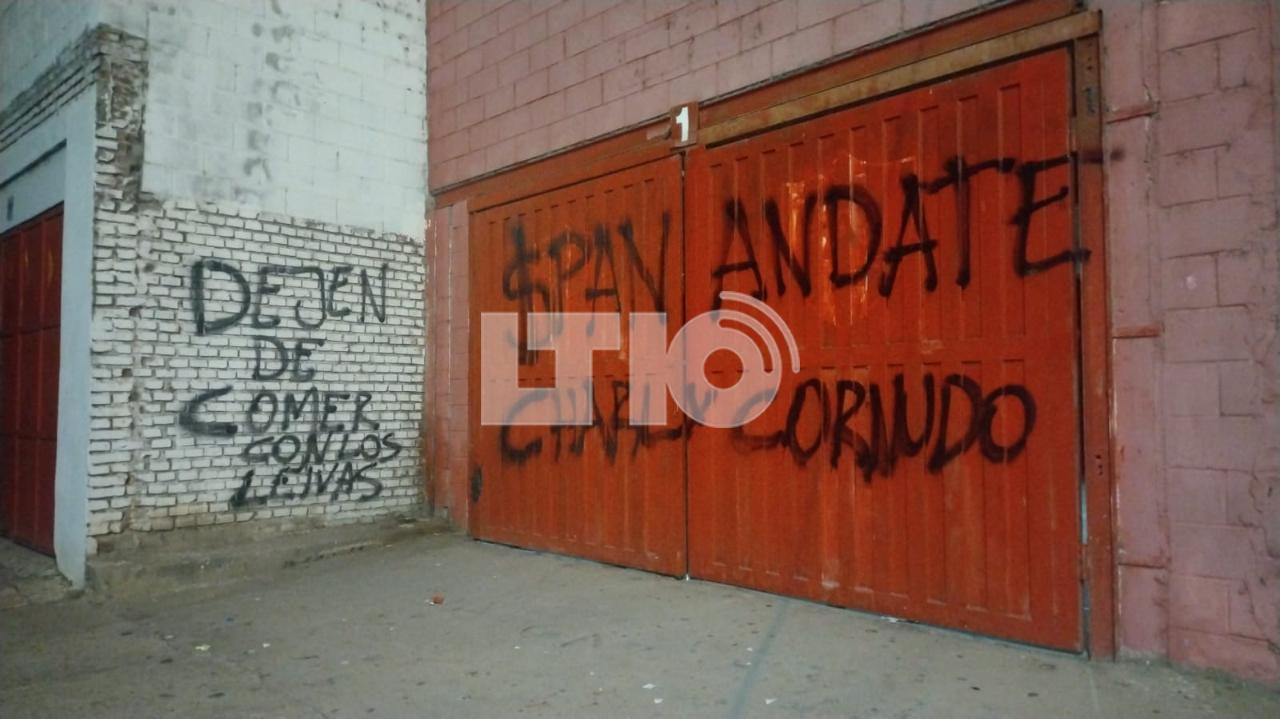 Esta mañana, paredones y portones en las inmediaciones del Club Atlético Unión, y que pertenecen a la institución, amanecieron con pintadas en contra de la actual dirigencia del club tatengue.