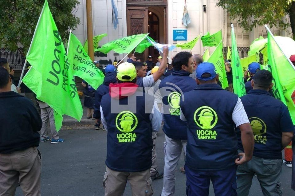 Afiliados de Uocra se manifiestan frente a la Secretaría de Trabajo por el despido de 19 trabajadores que se desempeñaban en tareas de mantenimiento en las obras de la Autopista Santa Fe- Rosario.