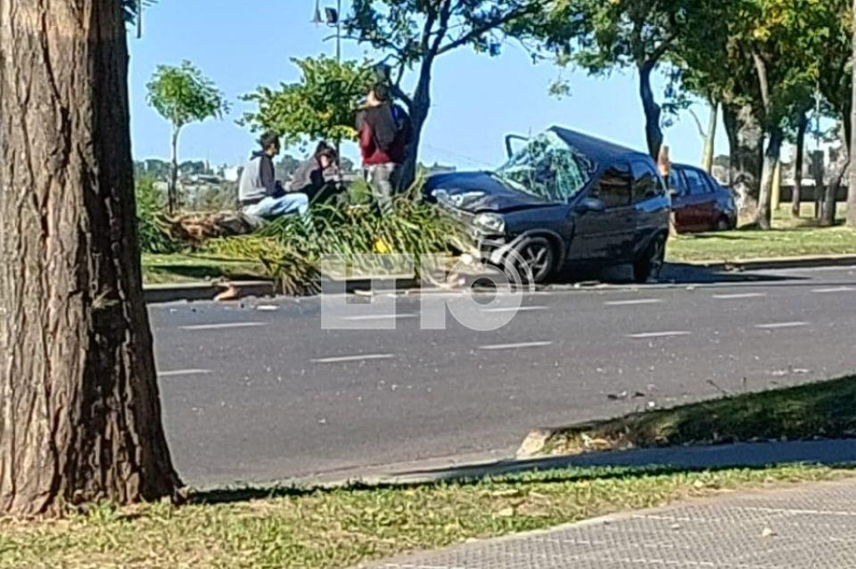 Esta madrugada, un automóvil que circulaba por Almirante Brown al 6.500 se estrelló contra una palmera en plena Costanera.