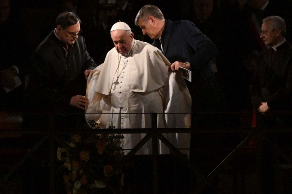 Francisco, mientras tanto, se mantuvo serio y reflexivo y siguió el acto desde un palco colocado al pie del monte Palatino, situado frente al anfiteatro Flavio, hasta que pronunció su oración final cerca de las 22.30 locales. El Vaticano calculó que unas 10.000 personas participaron de la celebración.