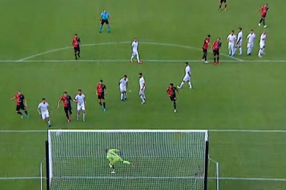 Cuando transcurrían menos de 10 minutos de la segunda mitad y con un marcador empatado 1 a 1 en el Cementerio de los Elefantes en Santa Fe, el 10 de Colón frotó lámpara una vez más y a los 8’ se encargó de un tiro libre para poner el 2 a 1 parcial.