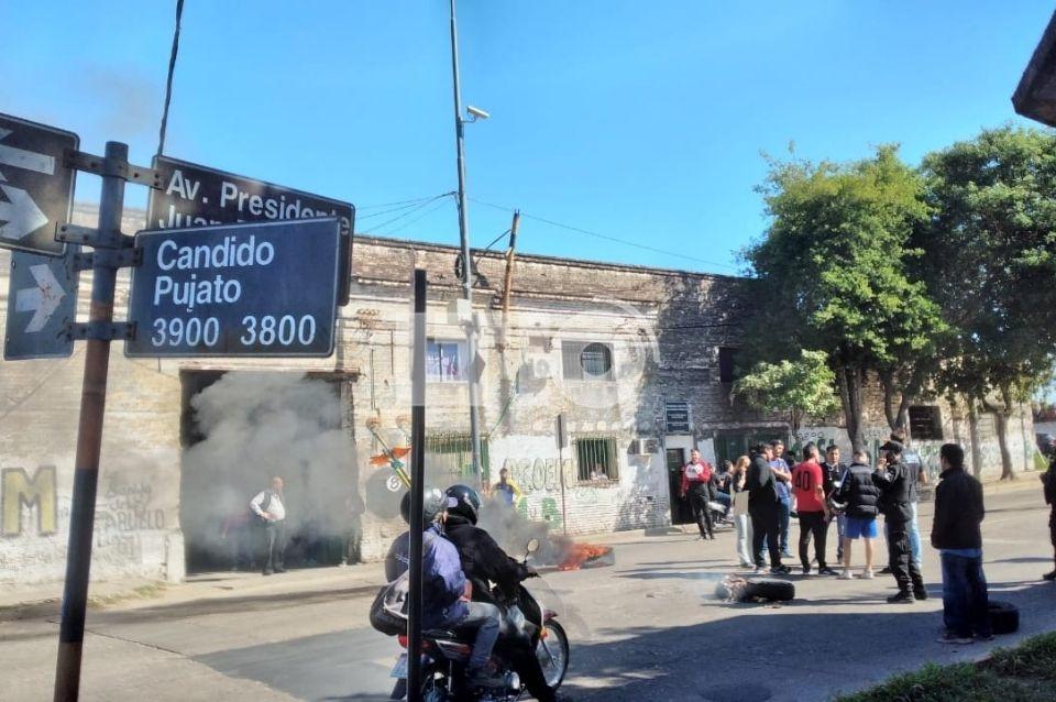 Un grupo de conductores de motocicletas autoconvocados realizan una protesta con corte de calles frente al Corralón Municipal en Avenida Presidente Perón y Cándido Pujato.
