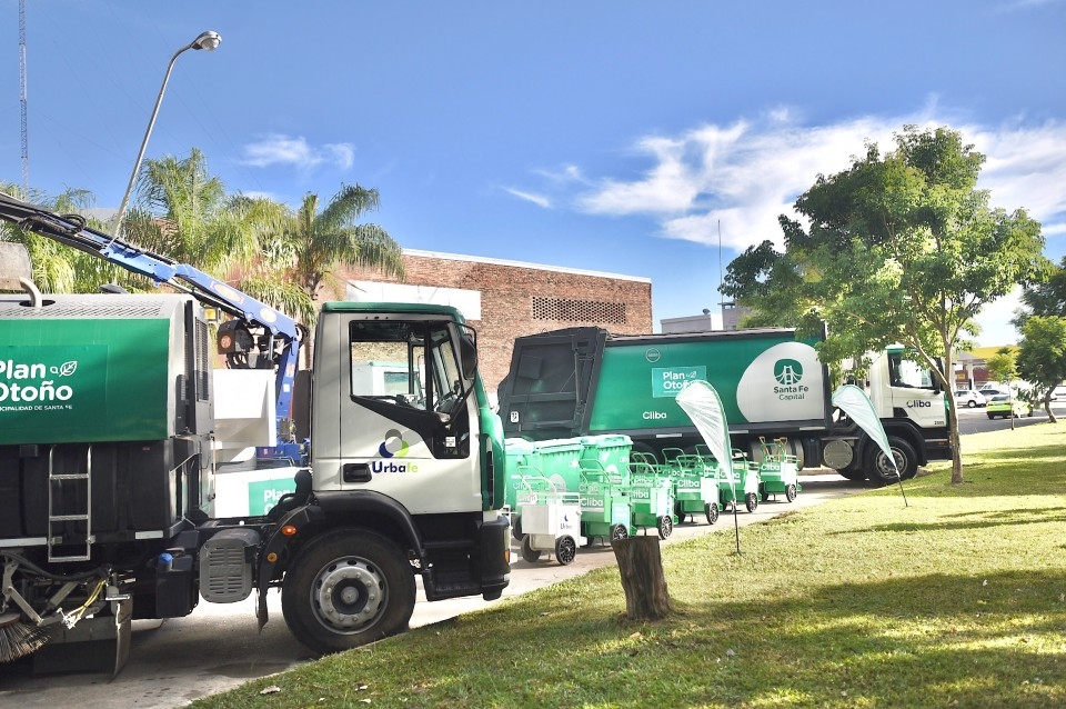 Con la exhibición de camiones especiales, contenedores y nuevo equipamiento, funcionarios de la Municipalidad presentaron esta mañana el Plan Otoño. Fue en el Ecopunto ubicado en el Parque Federal (Pedro Vittori y Regis Martínez) y el acto contó, además, con trabajadoras y trabajadores de las empresas recolectoras de residuos Cliba y Urbafe.
