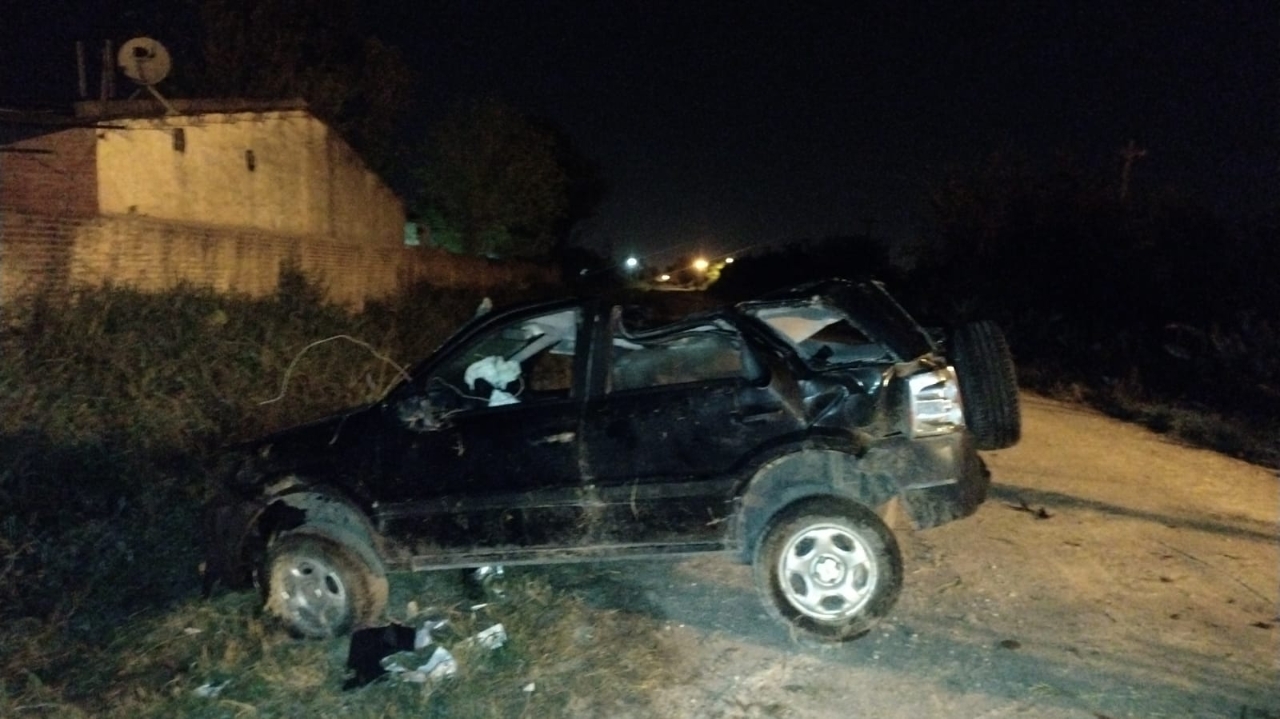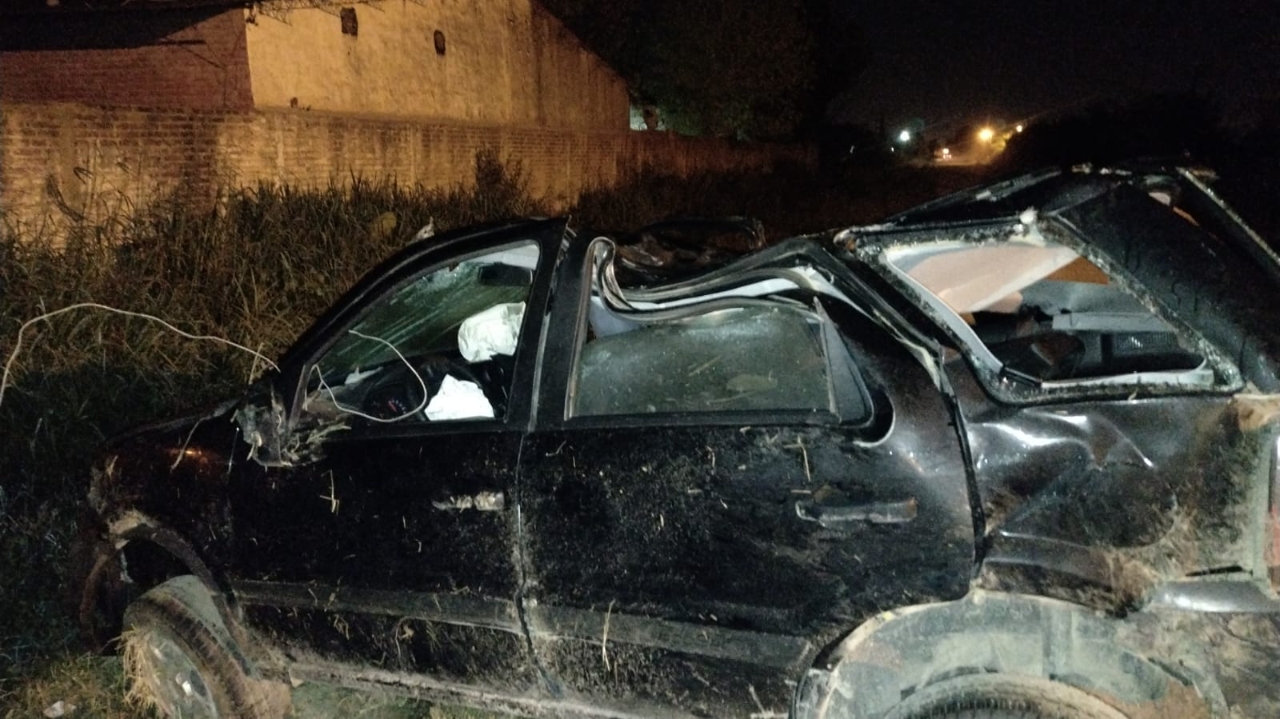 Según el reporte policial, por razones que se tratan de establecer el vehículo marca Ford Eco Sport color negro quedó recostado sobre su lado izquierdo en calle Dr. Zavalla y tumbó parte del tapial del frente del motel Atenas.