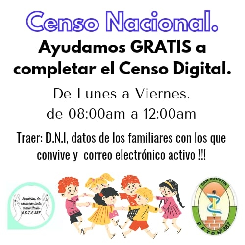 Matías Altamirano es docente de la institución y comentó que la idea es poder colaborar con aquellos que no tienen herramientas digitales, para que se pueden acercar a la escuela y tengan la posibilidad de hacer el censo digital. "Los chicos van a estar disponibles para que la gente pueda venís hasta el 17 de mayo a hacer trámite on-line y no demorar cuándo el consista pase por su casa".