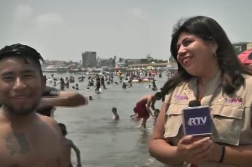 Vela apenas estaba iniciando su reporte, cuando de repente el hombre apareció a su lado, la saludó con un beso en la mejilla y le preguntó si estaba grabando y para qué medio, para posteriormente solicitarle su Instagram.
