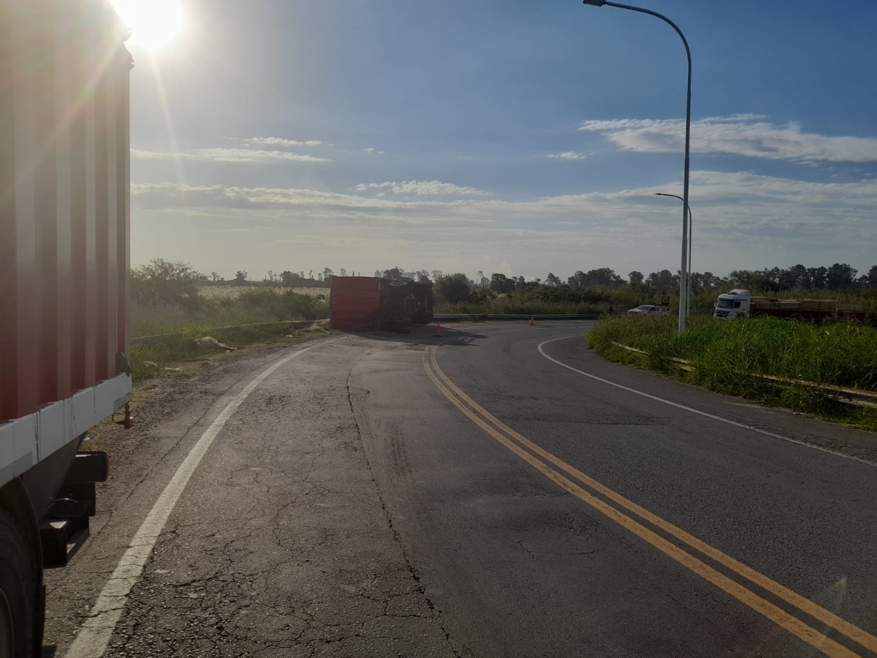 Un camión de gran porte con acoplado volcó en el acceso a la ciudad de Santo Tomé en la autopista. Provenía de Margarita con una carga de cereales cuyo destino era Sa Pereira.