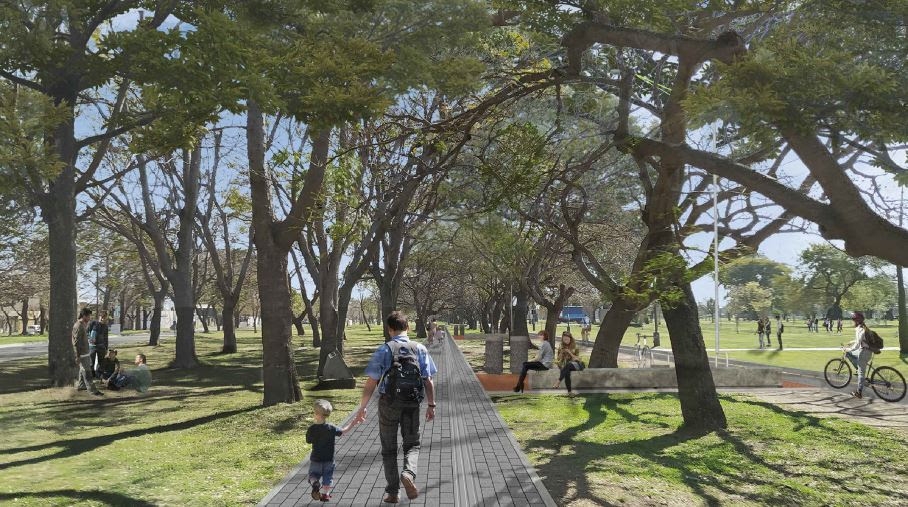 Las estrategias integrales de intervención incluyen la mejora de los senderos que atraviesan el parque. Se realizará una vereda nueva que irá desde Salvador del Carril hasta Luciano Torrent de intertrabado con guías podotáctiles, que es un material para facilitar el desplazamiento de las personas con discapacidad visual.