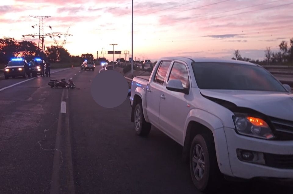 Según el parte policial, el conductor de la camioneta que se dirigía a Paraná relató que de repente se le cruzó un motovehículo abordado por dos personas.