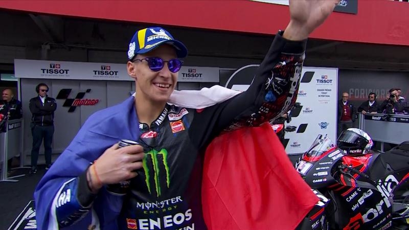 Después de unos inicios algo dubitativos en 2022, la defensa del cetro mundial de Fabio Quartararo (Monster Energy Yamaha MotoGP™) escribió este domingo un espectacular capítulo en el Autódromo Internacional del Algarve, donde 'El Diablo' protagonizó todo un recital para ganar con solvencia en Portimao y asaltar el liderato de la general con su primer triunfo del año. El talento de Niza hizo sonar 'La Marsellesa' por segundo año consecutivo en Portugal al ganar por delante de su compatriota Johann Zarco (Pramac Racing) y un Aleix Espargaró (Aprilia Racing) que sigue con paso firme tras su histórico triunfo en Argentina. La quinta ronda del año también será recordada por la estelar remontada de Alex Rins (Team Suzuki Ecstar), 4º después de partir 23º, por lo que iguala a puntos en la general con el nuevo líder.
