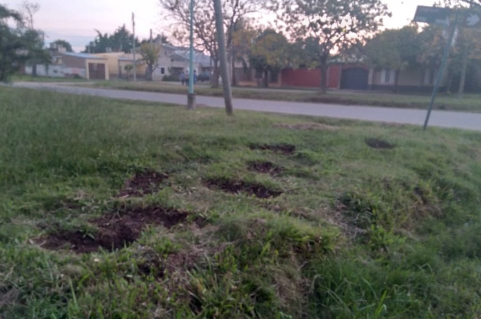 Los mismos se encontraban sustrayendo césped en la vía pública, en un costado de la iglesia de la zona y se alejaban en una camioneta.