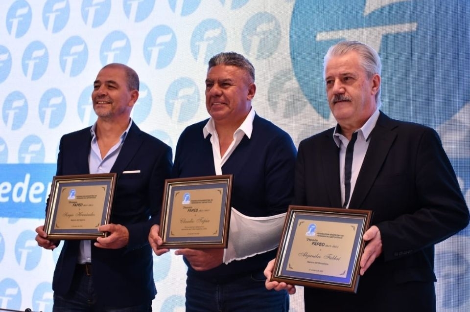 El presidente de la Asociación Argentina (AFA), Claudio Tapia, fue distinguido con el premio otorgado por la Federación Argentina de Periodistas Deportivos (Faped) por su mérito a la integración nacional y el aporte a la selección argentina.
