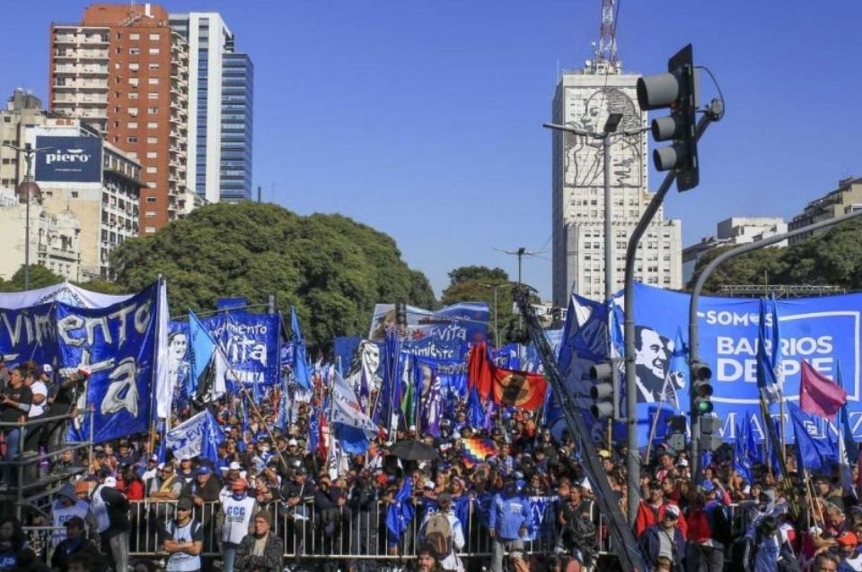 Hubo dos marchas: una con organizaciones y referentes alineados al Gobierno, donde no hubo presencia de la CGT ni del kirchnerismo. El Movimiento Evita, Barrios de Pie, entre otros, se presentaron en 9 de Julio y Av. de Mayo. Los principales oradores son Esteban "Gringo" Castro (UTEP), Gildo Onorato (Movimiento Evita), Dina Sánchez (Frente Popular Darío Santillán), Norma Morales (Somos Barrios de Pie) y Juan Carlos Alderete (CCC).