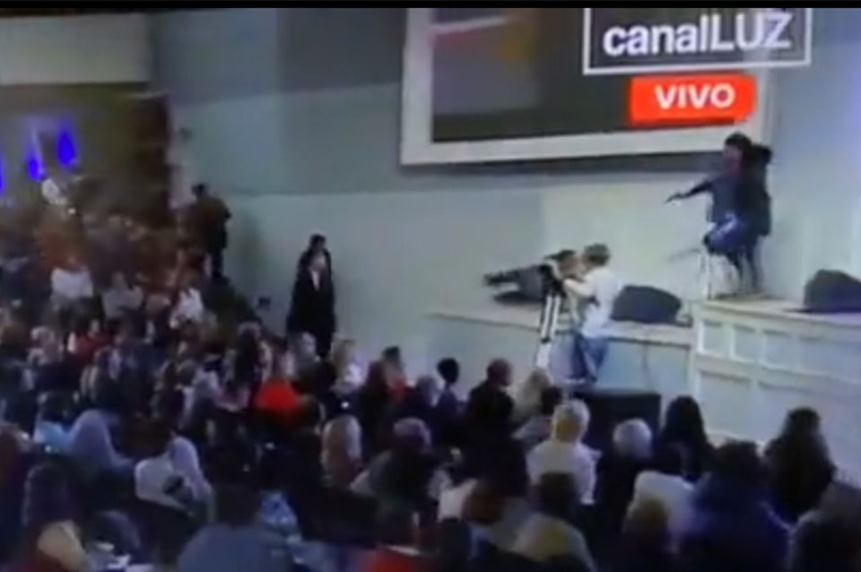 Momentos de tensión se vivieron durante un evento de la Iglesia Evangélica Misionera Argentina en la ciudad de Rosario cuando un hombre armado ingresó al lugar e interrumpió el discurso de una pastora. El ataque quedó registrado en video grabado de la transmisión televisiva.