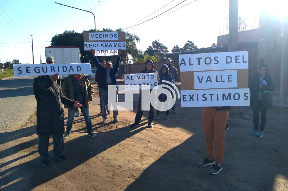 Este martes, un grupo de vecinos autoconvocados de manifestaron en el barrio Altos del Valle pidiendo mejoras edilicias para las calles, iluminación y mejores condiciones de seguridad. "El primer pedido tiene que ver con la seguridad. Cuando la gente sale a tomar el colectivo para ir a trabajar se los asalta. Y a parte está el pedido de obras para este barrio que hace 40 años que existe y no tiene asfalto, gas ni cordón cuneta" lamentaron.
