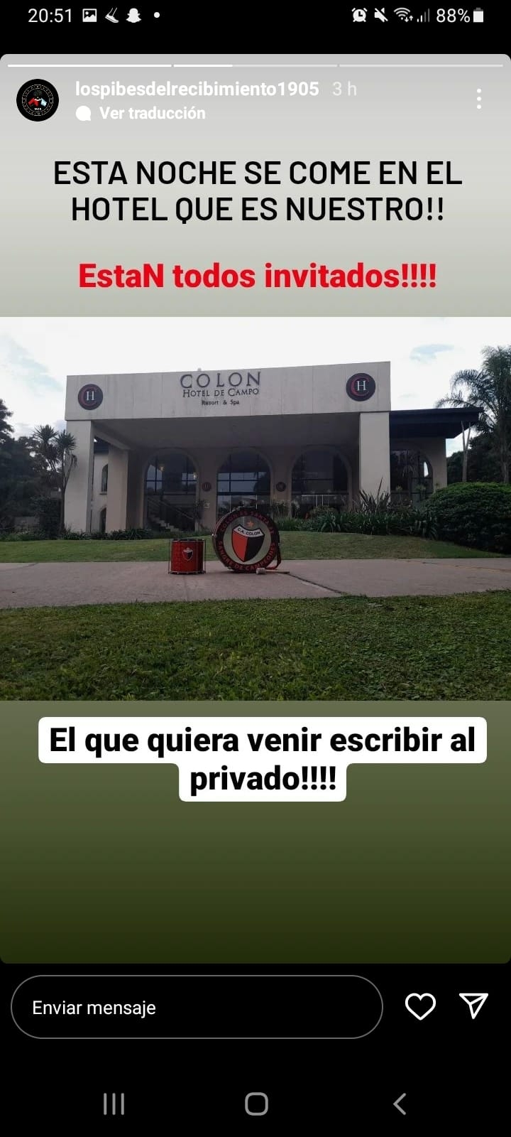 Un grupo de personas -hinchas y socios del club que pertenecen a la agrupación "Los pibes del recibimiento 1905"- están acampando en el Hotel de Campo del Club Atlético Colón.