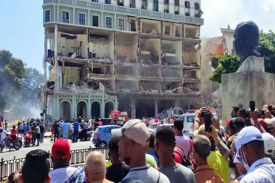 Tras el estallido, una nube de humo y polvo se extendíó hacia Prado, la principal avenida del centro de La Habana, donde se encuentra el hotel, cuyos primeros cuatro pisos quedaron prácticamente destruidos, con montones de escombros y vidrios alrededor, al igual que la fachada del predio.