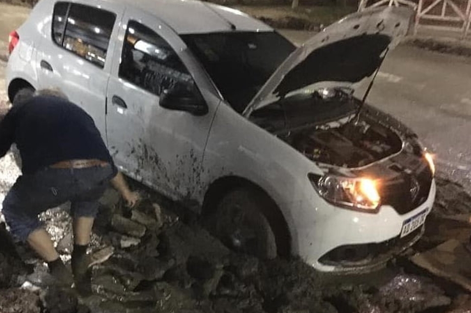 En las imágenes se puede ver que la zona estaba recién pavimentada, pero no pareciera estar cerrada al tránsito porque hay ningún cartel. Incluso otro rodado estuvo muy cerca de ingresar por el mismo lugar que el conductor del Renault blanco, pero se detuvo a tiempo.