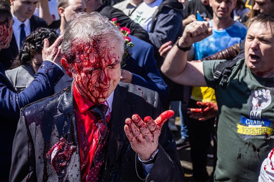 El embajador ruso en Polonia, Sergei Andréiev, fue atacado este lunes en Polonia cuando un grupo de gente le arrojó pintura roja. Antes del incidente, Andréiev llevó a cabo un homenaje floral en el cementerio-mausoleo de los soldados soviéticos de la capital, Varsovia, con motivo de la festividad nacional rusa del día de la Victoria.