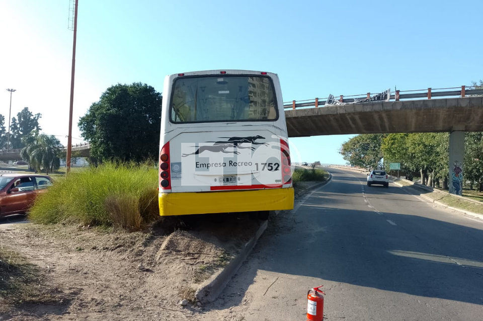 En horas de esta mañana, a un micro de la Línea 13 se le cortó la dirección y perdió el control, impactando contra el cantero central de Boulevard, en la zona de acceso al Puente Oroño.