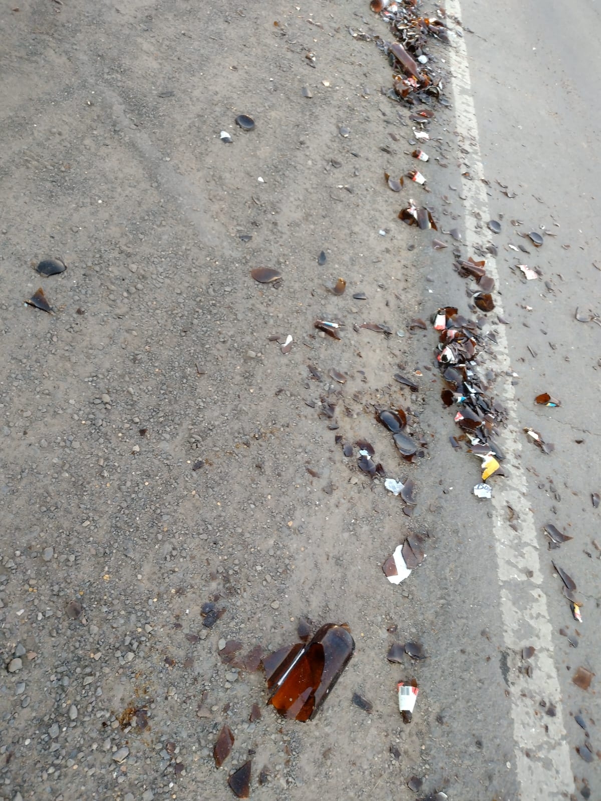 El transporte se dirigía a la cervecería Santa Fe con una carga de botellas de vidrio vacías que finalmente cayeron y rompieron en la calle.