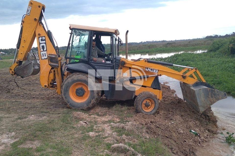 Vecinos de Arroyo leyes denuncian irregularidades en trabajos sin señalizar con maquinaria pesada cerca del río sobre la defensa este.