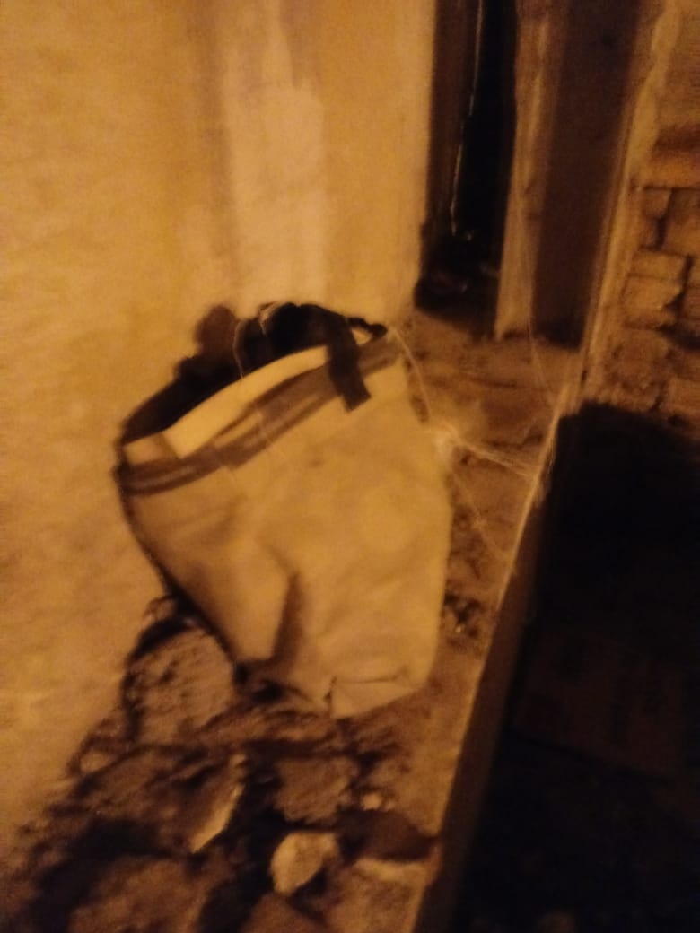 Todo fue hallado en la zona del garaje de esta dependencia, guardados en una bolsa de color marrón y sostenido por un gancho de fabricación casera de alambre, ubicado sobre un ventiluz proveniente de las celdas de los internos civiles.