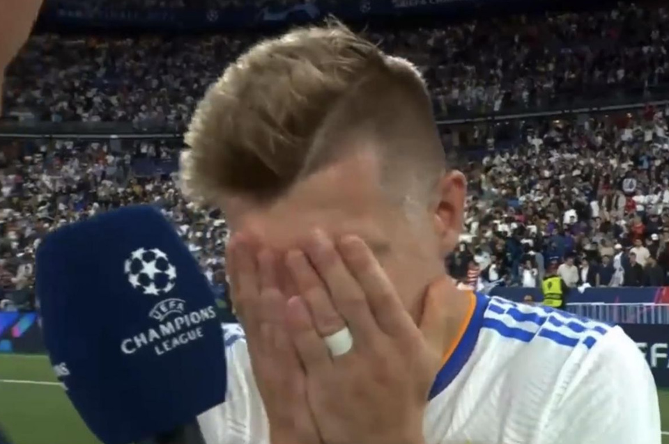El pasado sábado Toni Kroos levantó por quinta vez en su carrera el trofeo de la UEFA Champions League, la cuarta con la camiseta del Real Madrid (la restante fue defendiendo los colores del Bayern Múnich). En medio de los festejos, cuando todo parecía que nada podría borrar la sonrisa del rostro de los merengues, el alemán se cruzó con un periodista en vivo.