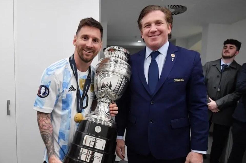 En sus redes sociales, el presidente de CONMEBOL, compartió una fotos junto al capitán de la Albiceleste posando con el trofeo y otra también junto a Chiqui Tapia y las dos copas obtenidas. Asimismo, lo acompañó con unas palabras para el diez: "Fue un placer entregarle a Lio Messi una réplica de la Copa América, cuya última edición fue ganada por Argentina" .