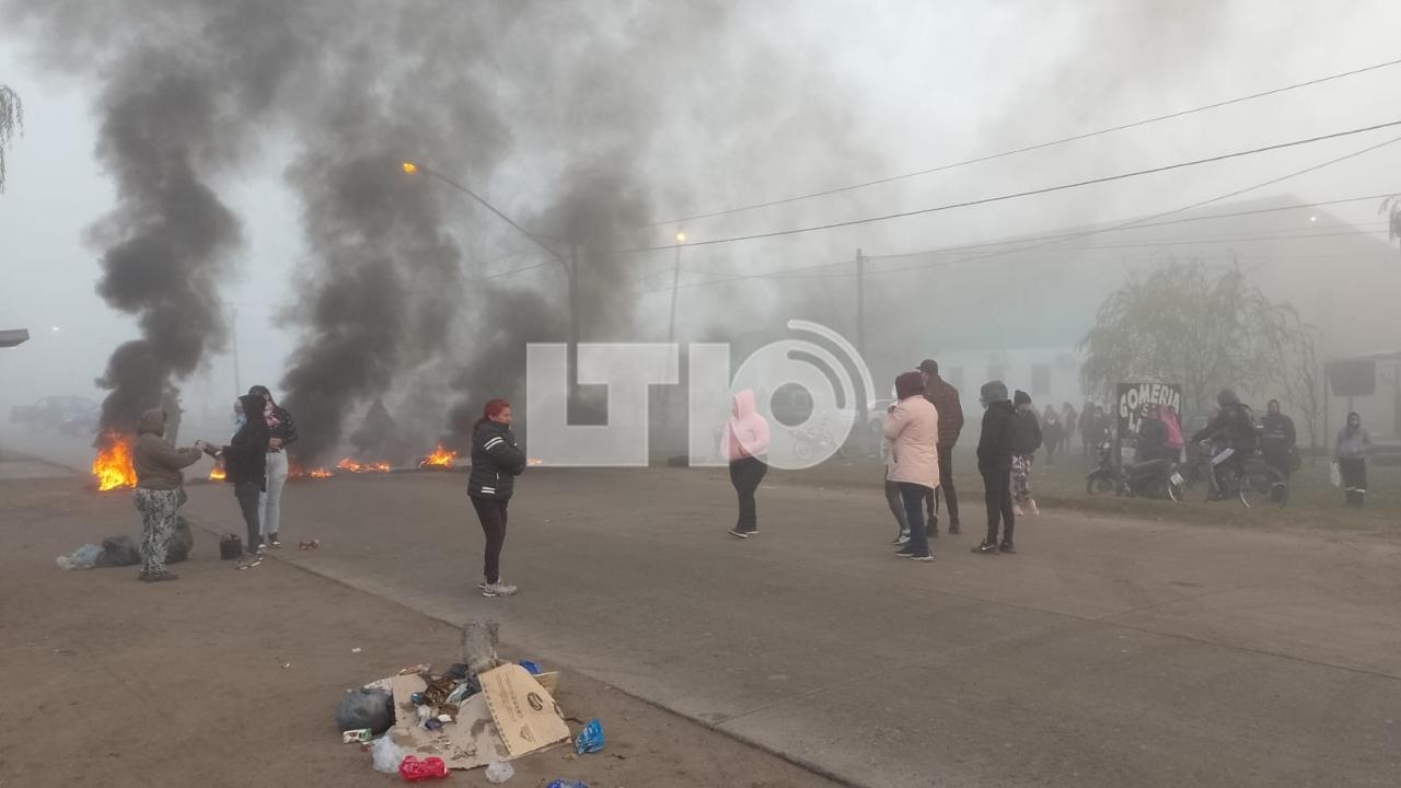Vecinos de barrio La Tablada realizan una protesta con quema de cubiertas y corte de calle en Teniente Loza al 6.900, frente al Distrito Noroeste de barrio La Tablada.
