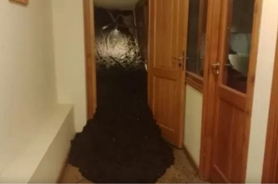 El barro entró con fuerza el primer piso del hotel, cuyos huéspedes salieron como pudieron de las habitaciones, y llegó a la planta baja. Entre el primero de los pisos de habitaciones hay un restaurante y una piscina cubierta.
