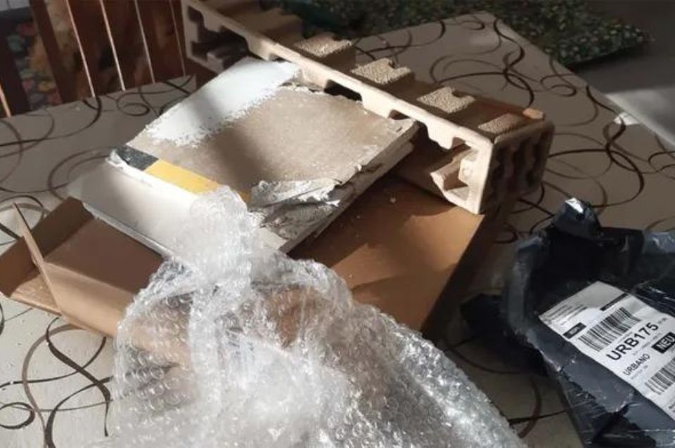 Es lo que le ocurrió a Cecilia, quien compró un computadora y recibió un pedazo de mampostería en la caja que le enviaron por correo privado, según su publicación en Twitter que acompaña con una fotografía de la caja recién abierta.